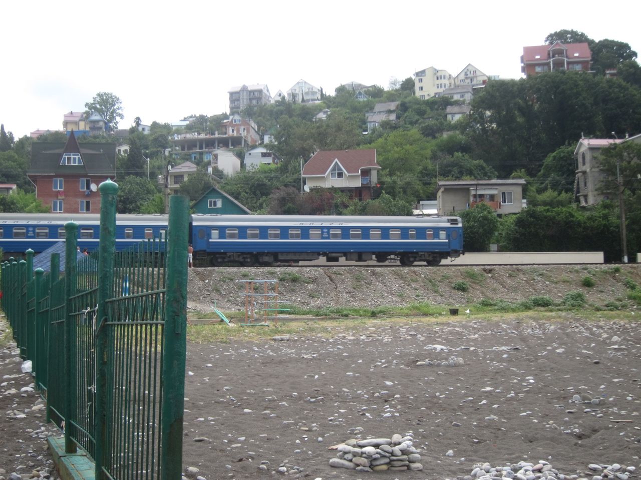 Состав отправлением из Адлера 12 августа 2011 года. Что характерно, Горьковский филиал нашел таки две приличные плацки (одна из них даже нового модельного ряда) в традиционно говенную плацкартную группу. Купейная группа по-прежнему из трансформеров.