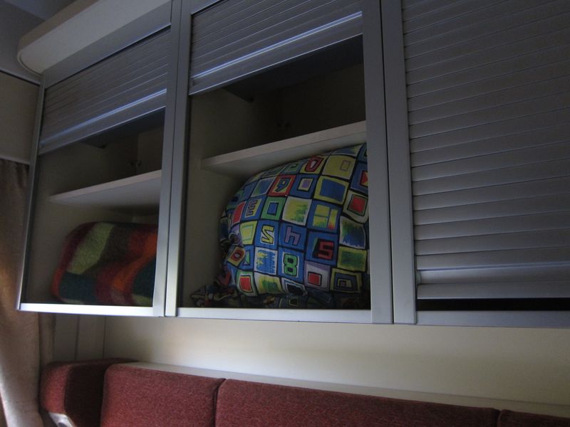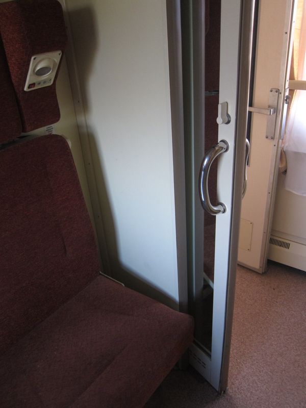 Место 37 располагается в купе для отдыха проводников, сами же проводники едут в первом купе (места 1 - 4, что не идут в продажу). Причем такая практика в поезде была введена только в купейных вагонах с нечетными номерами: в вагонах с четными номерами купе для отдыха используется по назначению, а в продажу идут места 1-36. Обращаю внимание, что в тверских вагонах старого модельного ряда в купе для отдыха предусмотрена розетка. Заполняемость вагона по отправлении из Нижнего всего 6 человек, посадка и высадка на многих, в т.ч. мелких станциях. Купе для отдыха проводников находится на "скосе", посему полка-трансформер короче на 10-15 см. на глаз. В ячейках шкафа на стене обнаружился двойной комплект подушек и одеял.