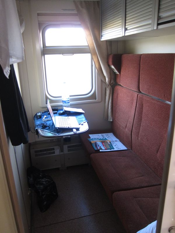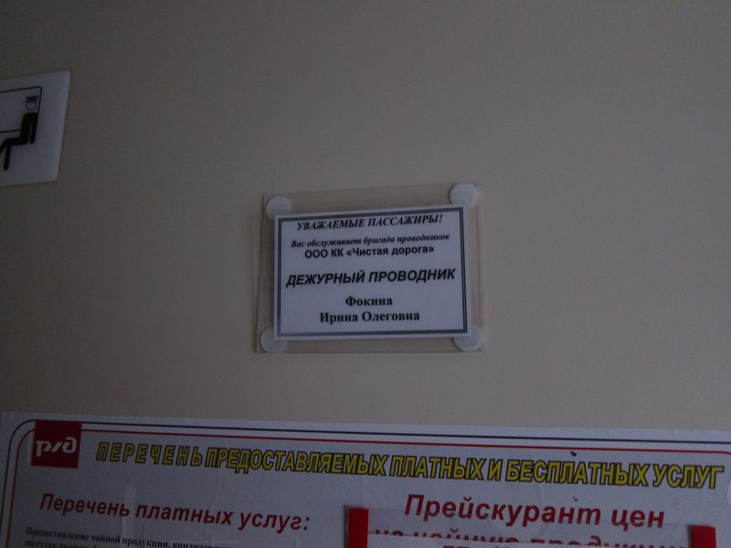 Проводницей оказалась молодая девушка, работающая в одно лицо и очень любезно. Я в некотором смысле поражен, поскольку ожидал чего-то толстозадо-свеколомордо-нагловатого. Одна семейка затеяла переместить ребенка, которому взяли билет в плацкарт, в наш купейный вагон за просто так (мест-то в вагоне полно свободных), давя на жалость. Проводница соседнего вагона помогла прилюдно уличить их в хитрожопости и направить к начальнику поезда.