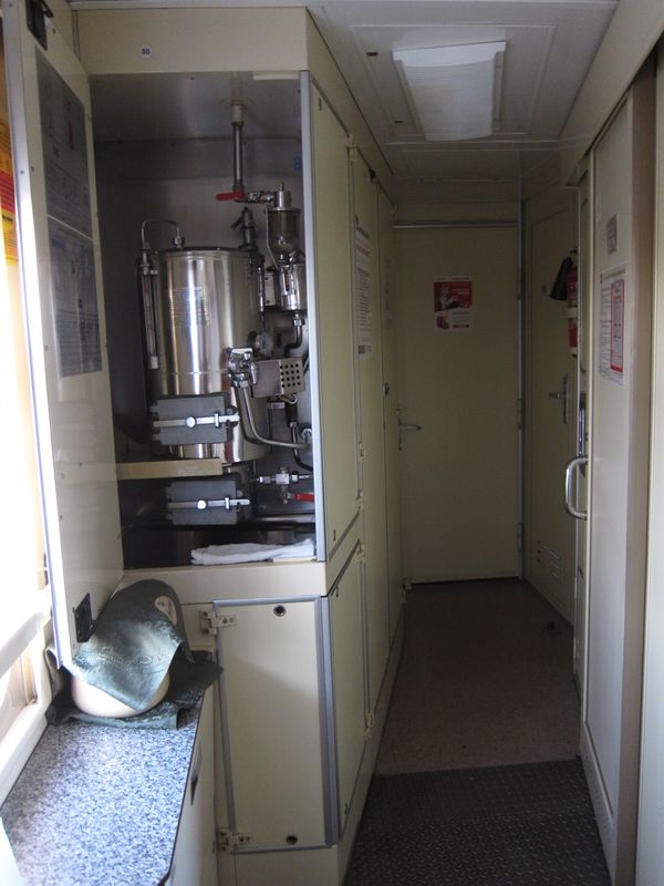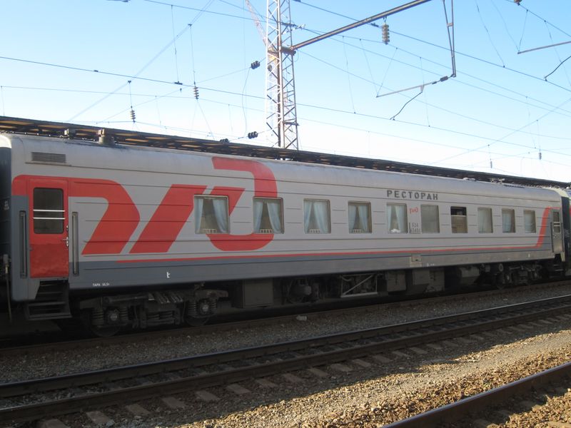 Около 10:00 прогулялся по составу до ресторана, что между 10 и 11 вагоном. Трансформеры все приличные, есть как с коричневой, так и с голубой отделкой полок. Инвалидный штаб - тверь начала века. В некоторых вагонах есть ковровая дорожка. В ресторане (график работы с 9:00 до 22:00) меня не накормили, там и нет никого, только один повар, который что-то промямлил про отсутствие официанток и посоветовал подойти после двух. Так что остался без завтрака, ну хоть обедом накормили: еда хорошая и относительно бюджетна (700 рублей за обед из трех блюд), единственное, что, многих позиций в меню нет в наличии.