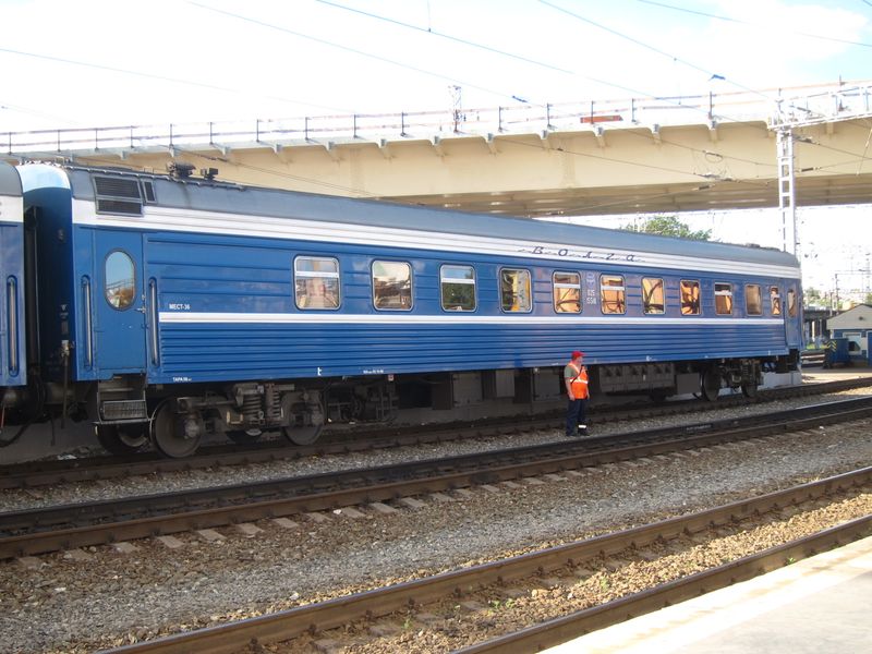 Достался тверской вагон старого модельного ряда с овальными окнами в дверях (т.н. наутилус) в цветах фирменного поезда "Волга", построен в июне 2008 г. Соседнему 20-му вагону не хватило места на второй платформе Нижнего.