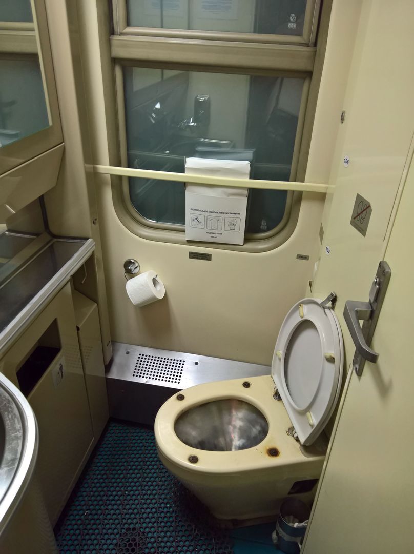 Два биотуалета в разных концах вагона. Всю дорогу были открыты, на санзоны не закрывались, содержались в чистоте и порядке. Издавали жуткие звуки, которые не могу не отметить. Если бы в мире проводились чемпионаты на самый противный звук – туалет моего вагона однозначно претендовал бы на призовое место. Пассажирский опыт большой, есть с чем сравнивать.