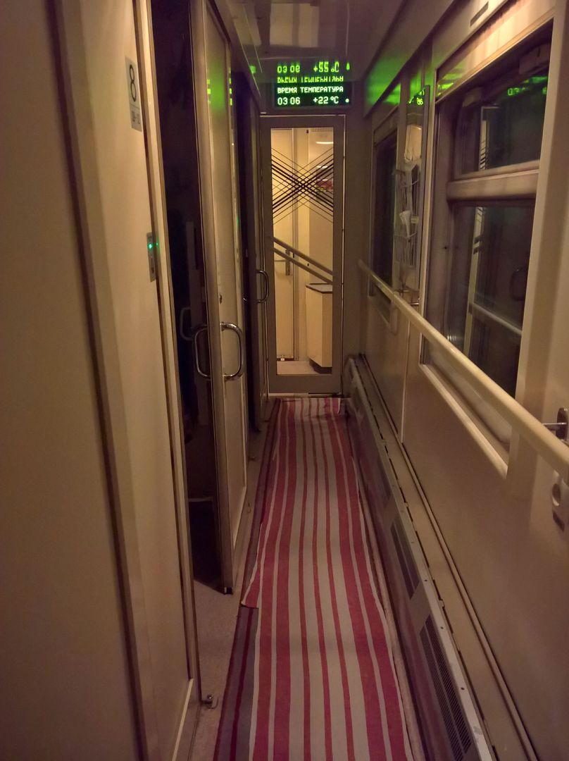 Поезд 005Ж формированием в Астрахани прибывает в Саратов ночью в 02:33 и отправляется дальше в 03:21. В «оригинальном» астраханском поезде было 8 вагонов, которые, согласно сайту РЖД были раскуплены почти полностью (3 свободных места в купе на момент покупки билета). В Саратове к 8-му вагону прицепили ресторан и вагоны с 14 по 21. Мой вагон был 20-й, купе. Фото прилагаются. Завсегдатаи, при желании, скажут что за тип, а то я не разбираюсь.