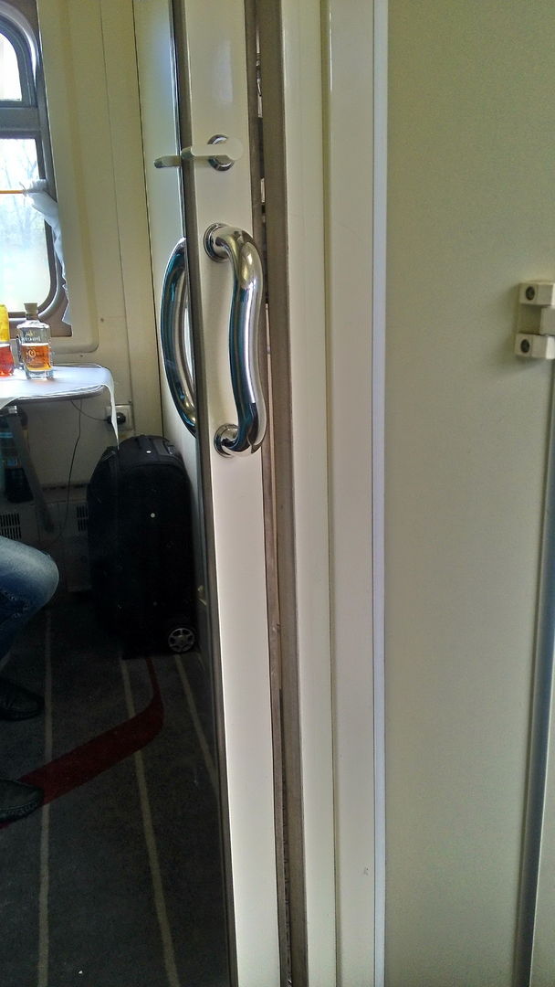 Проехал данным САБЖем от Грязи до Ростова.... 25.04.2016 год, опоздание по моей станции - 5 минут, впечатление подпорчено, в вагоне - все вроде хорошо... Но! Такое встречаю впервые: постель из СВ нельзя, ладно, не умеете зарабатывать - не надо, я не гордый. В вагоне всего + 16, пуховик пришелся очень даже кстати. Щель между дверью купе и стеной - как минимум 0, 5 см, мало того, что плацкарт по факту, но так еще... Об этом позже. Кровать в разобраном состоянии - при попытке поднять - упирается в столик. Оказывается, что надо сначала поднять столик, потом опустить кровать, ну и обратный порядок таков же. Все купе в заплатках, ремонт, с опускание кровати через поднятие стола - видимо, всех устроил... ::-(: Возвращаюсь - пил я себе пивко, в закрытом типа купе, но пришла полиция, она не просто шла, она пришла, так как меня видно - результат - 500 рублей за распитие, можно официально, но так как документы оформлялись крайне долго, и видно было, что не за что, выпроводил за билет Банка России, 500 рубчиков. Поездка, в моральном плане, испорчена полностью. Проводницы две - обе вообще не умеют что-либо контролировать в вагоне - ни кондиционер, ни отопление. Грязи замечено не было, шли хорошо. Пусть и не объективно - но максимум 4 была за вагон и место 37. А если напишу про дисковые тележки, то и вообще в минус уйду ::-D: Как скажет Летучая - не рекомендую ::-D: Ну и фото, всех косяков вагона 2008 г. в. :;-): Забыл - мыла нет, бумажных полотенец - нет, сидушки есть и туалетная бумага)