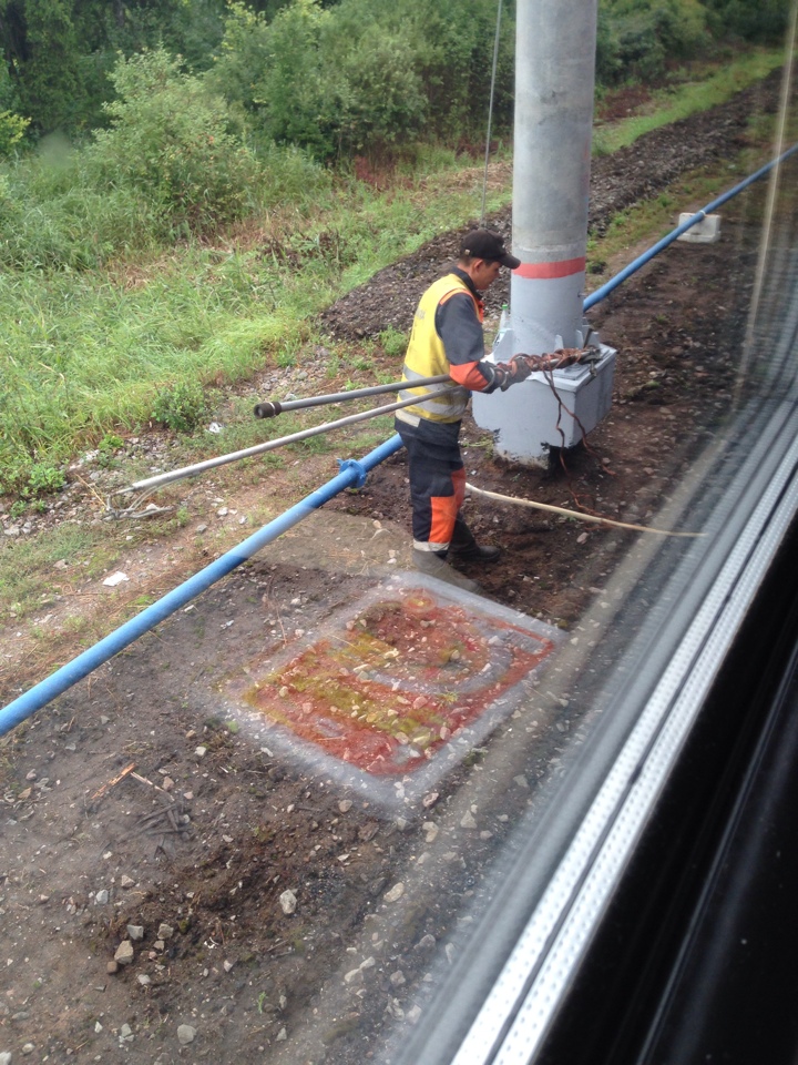 Во время техстоянки на ст.Торфяное - местный электрик зачем-то кинул под вагоном какой-то кабель, перед отправлением поезда, убрав его: