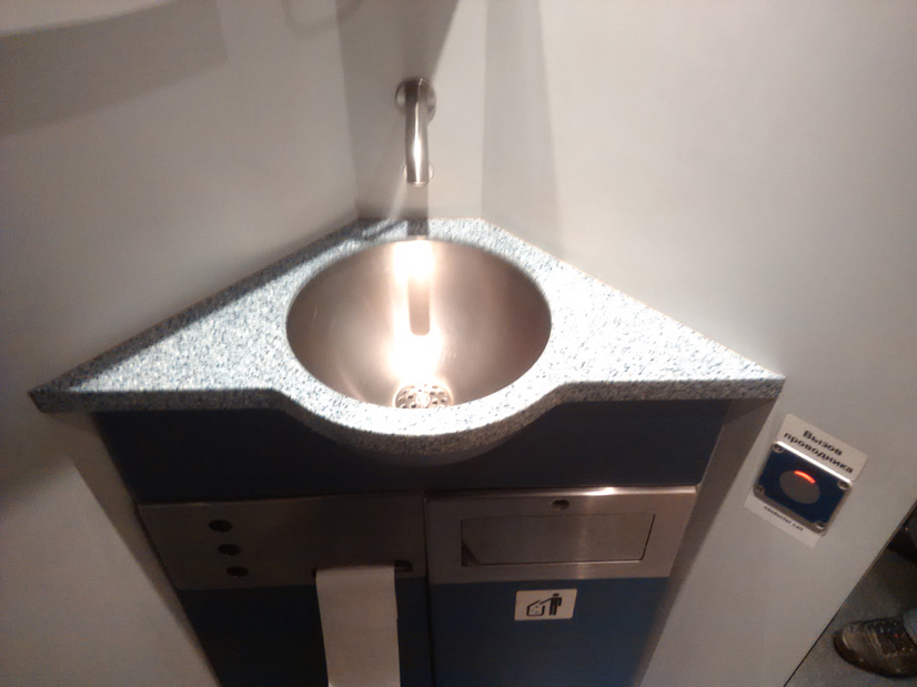 4) Чистота вагона и состояние туалетов – отличное. Туалет био, открыт постоянно. В туалете жидкое мыло, туалетная бумага, бумажные полотенца.