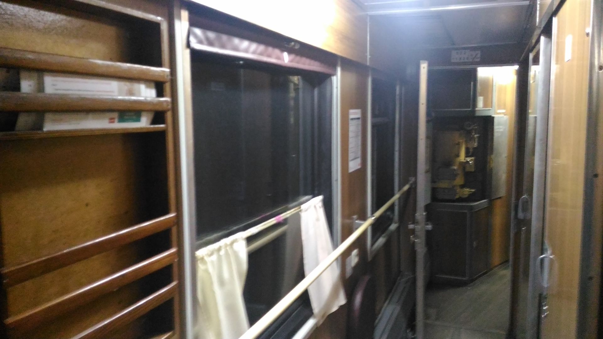 Влажная уборка вагона не проводилась. Вечером включали люминисцентное освещение. В каждом отсеке над окном есть тумблеры для включения/выключения верхнего света в купейной части и над проходом. Около полок - замурованные отверстия от индивидуальных светильников.