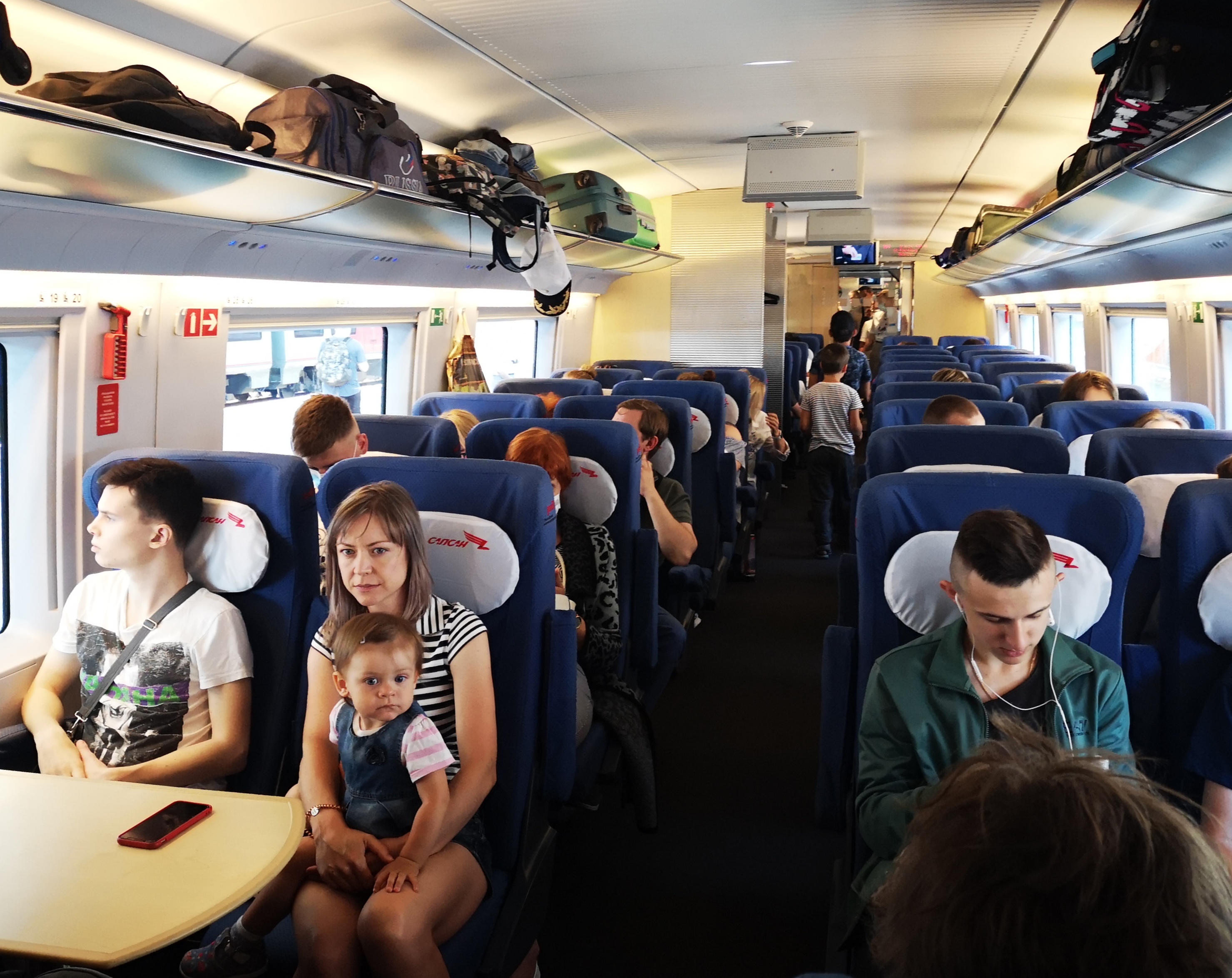 23 ноября. Мо - Ле баклан 768 вагон 4. Внешне - ЭВС-1-016 чего сказать. Чистота и порядок - на уровне. Проводницу виел только наэ остановках, выбегая покурить за минуту стоянки. Самое важное - скорость от Мо до Крюково 140, далее до Клина 200, от Клина до М. Вишеры 220 (Тверь - 100), от М.Вишеры до Любани 200, далее до Колпино 160, затем 120. При проезде СПСМ стоял в тамбуре, табло не видел. Контингент - молодежь и люди моего возраста. Очень доррогое бистро. Формирование Металлстрой. Оценка 10 баллов. Общее впечатление испортило то, что 250 не ехали.