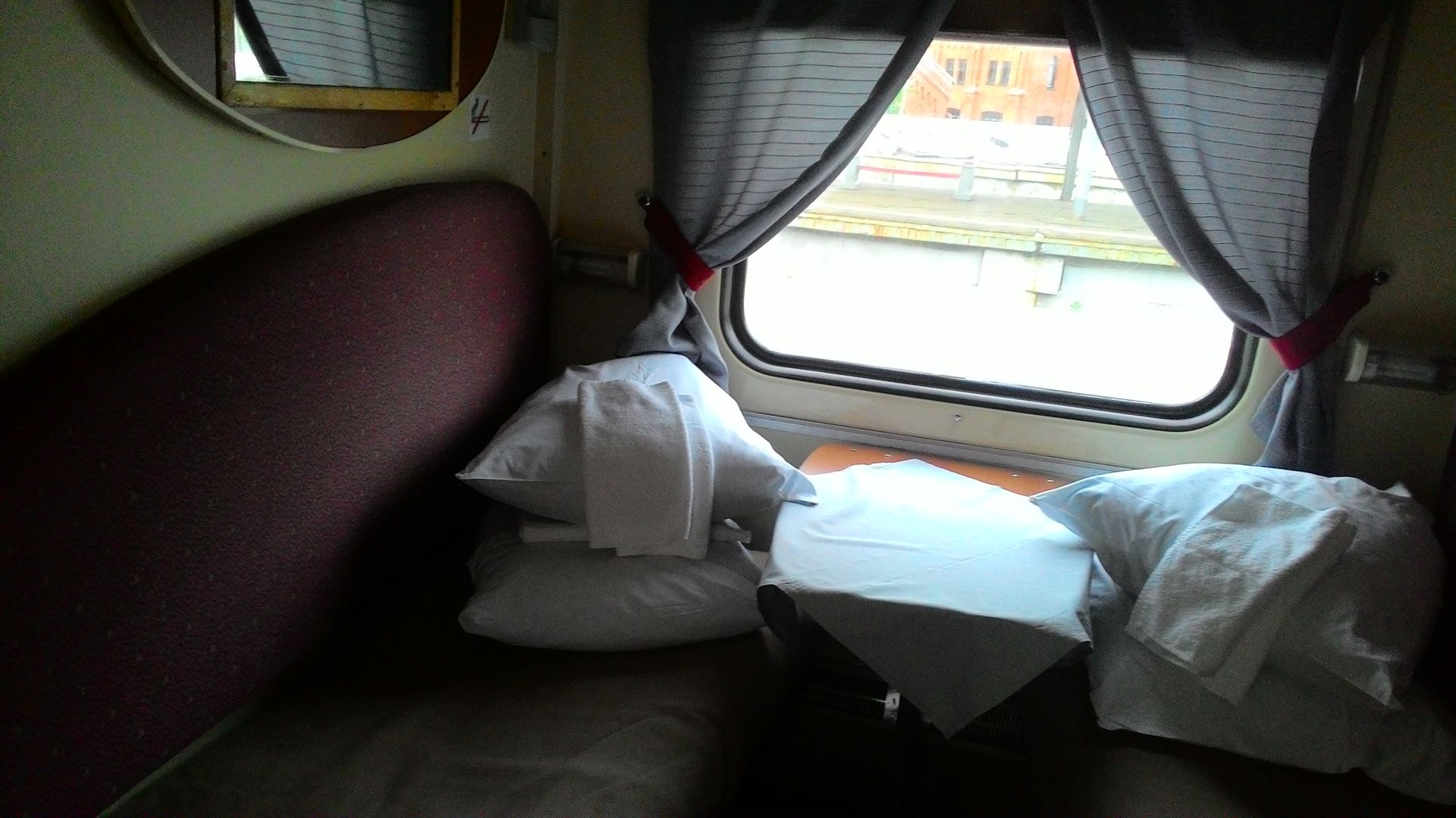 Чистота купе на 4. Минус за грязную ковровую дорожку. Освещение в купе работало только основное, индивидуальное не включалось. Из окна не дуло. Плохо держались занавески, поперечина падала. В туалете было чисто, бумажные полотенца, бумага, жидкое мыло присутствовали. Туалетом на стоянках можно пользоваться. Пассажиры в коридоре заряжали мобилки, небольшое количество детей носились в начале вагона. Окна в коридоре были открыты (форточки 45 градусов). В вагоне было тепло. Я в купе сидел в футболке.