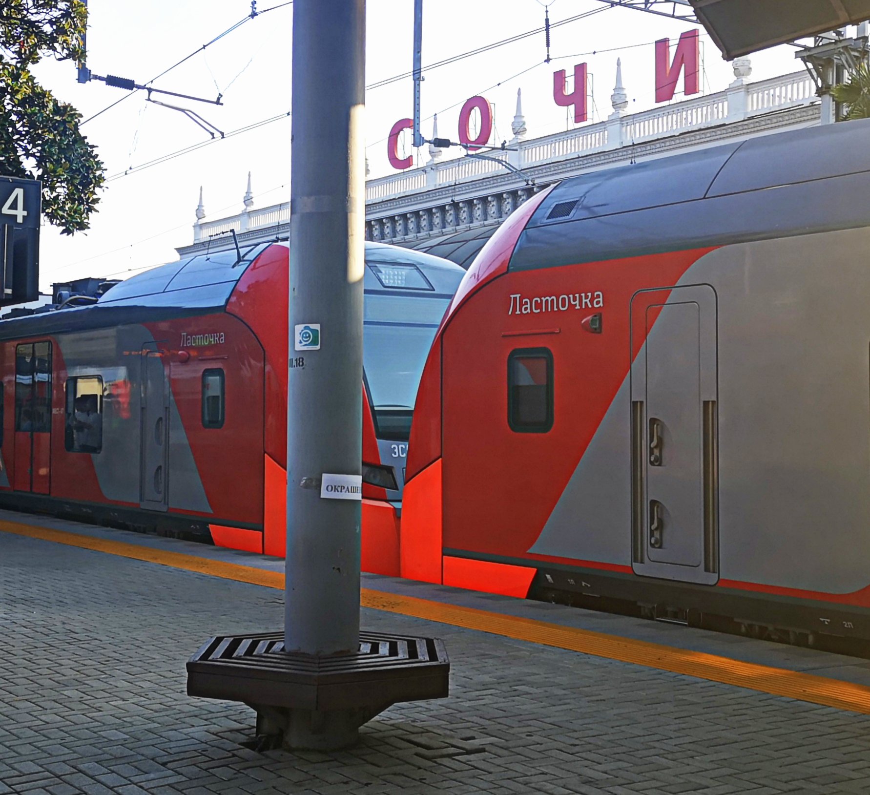 Покидаю перрон, на первом пути стоит только что прибывшая ласточка Майкоп — Адлер.