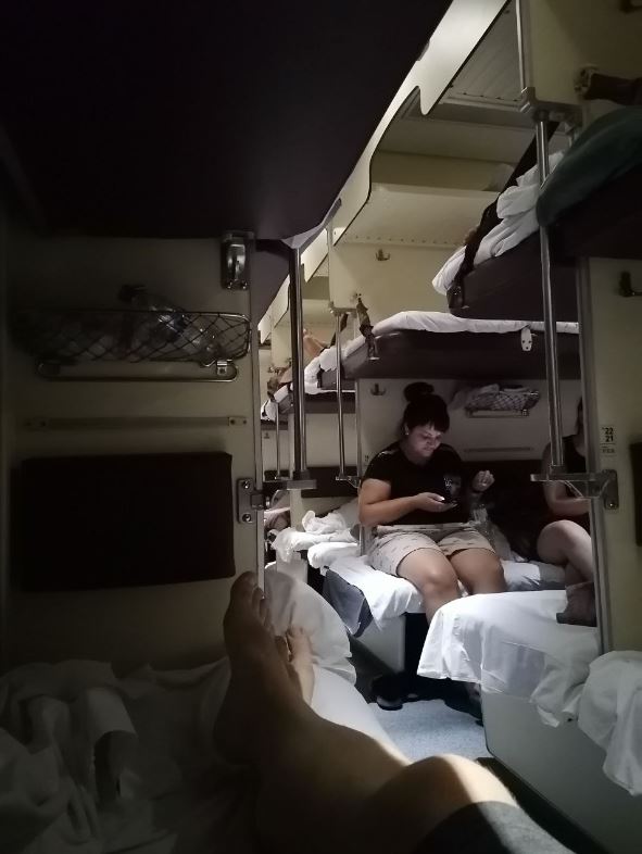Зайдя в вагон ощутили, что работает кондиционер, хотя было немного душно. Постельное уже лежало на полках в упаковках, сразу расстелил постель, так как большинство пассажиров уже спали.