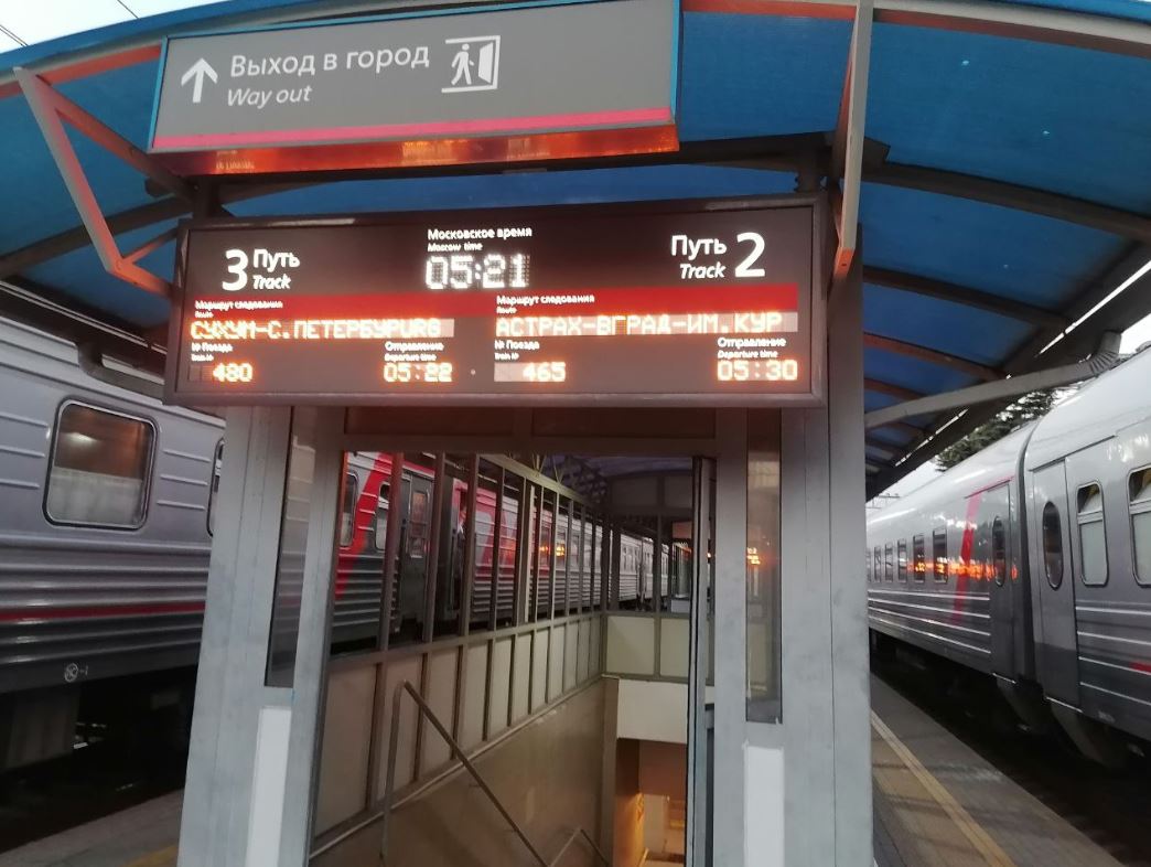 Состав прибыл под ЭП1 -215 на 5-й путь. Нумерация с хвоста. Двух группный, Астрахань / Волгоград. В голове шли вагоны 22, 21, 20 купейники Астраханской группы. Наш вагон вроде к волгоградской группе относился. В этот раз вагонов в схеме было несколько меньше, навскидку вагонов 16..17. Наш вагон, аналогичен прошлой поездке. Кондиционер, биотуалет.