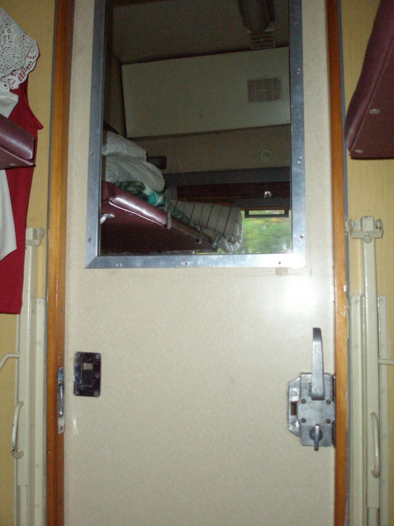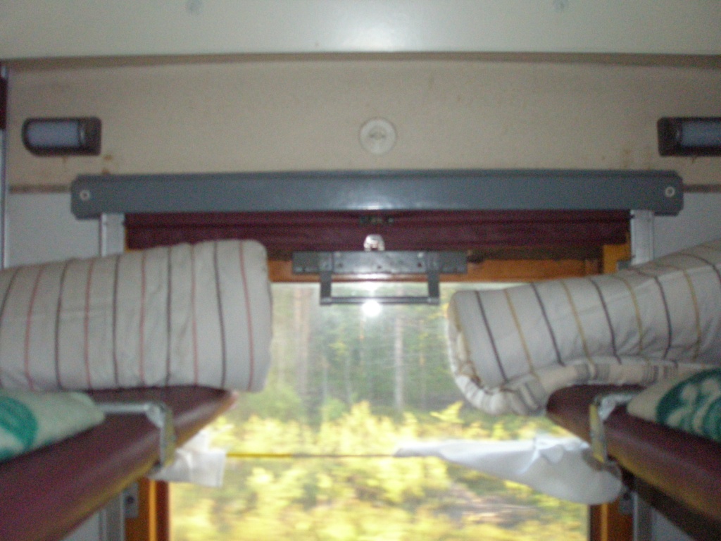 Отдельный разговор про окна. В некоторых купе они вообще не закрывались (правда, в моем, слава богу, окно было закрыто, но в рамах лежали куски шерсти), поэтому, когда пошел дождь и похолодало, пришлось вызывать поездных механиков. Они один раз окно закрыли, но при этом сильно испортили раму, в результате чего в ней образовалась огромная щель. В другом случае, уже под вечер, главный механик вообще отказался идти, заявив, что он хочет спать, поэтому пришлось привлекать других людей к закрытию окон. И еще я, открыв аварийное окно, не смог потом его закрыть, а когда оно стало все больше опускаться, под него подложили деревяшку (собственно, девервяшку клали на многие открытые окна). Но механики его вскоре закрыли.