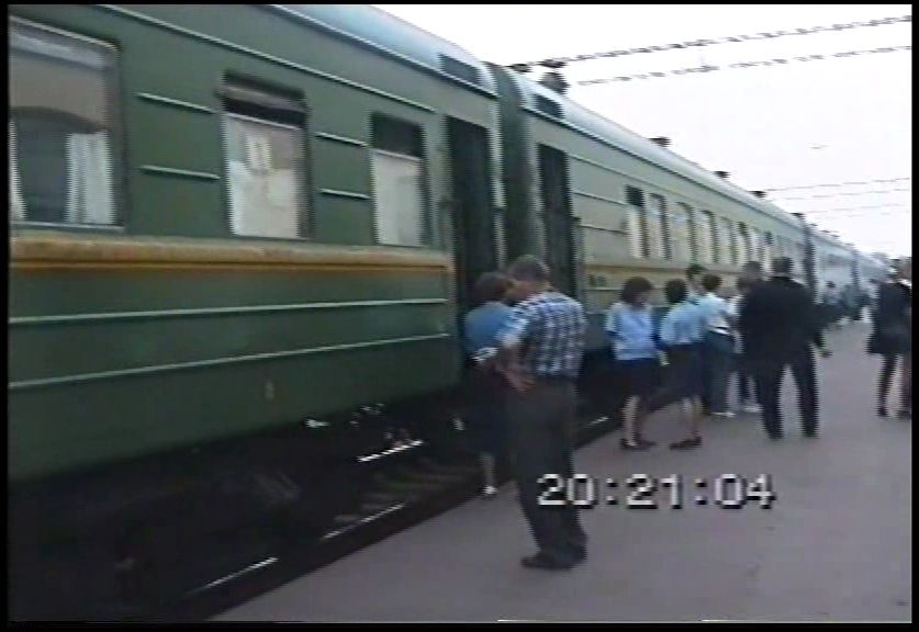 Состав стоит у первой платформы ст. Горький-Московский. Вагон №01 (за "теремком") - белый аммендорф без кондиционера со срезанными софитами, в купе для отдыха проводников которого я и ехал до ст. Туапсе.