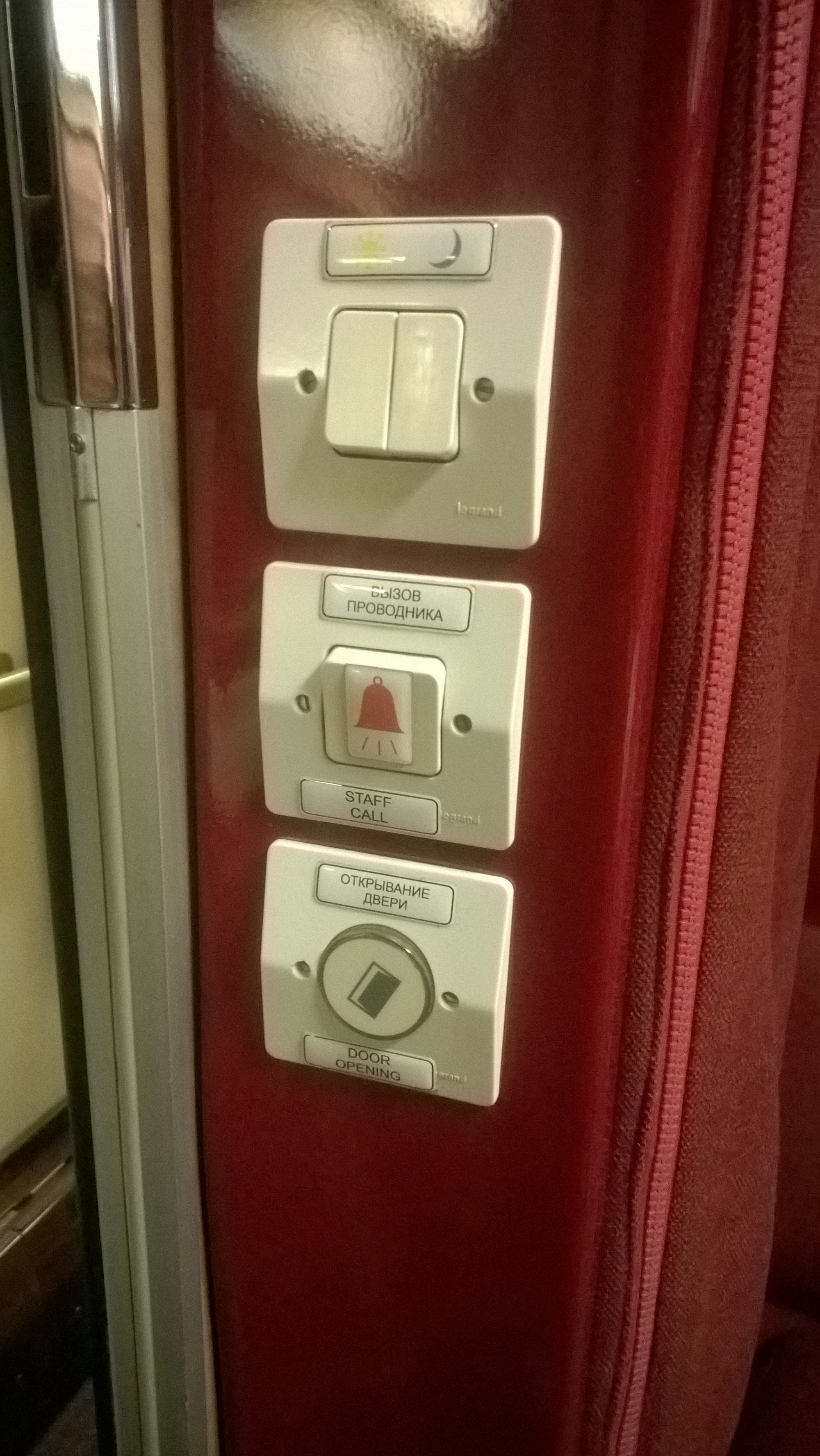 Также из наворотов есть система открытия двери в купе по индивидуальным картам - они здесь действительно работают, а не как часто бывает :"нам не выдали" или тупо сами пассажиры скоммуниздили карты. Открывание двери со стороны купе производится нажатием специальной кнопки, дверь сама чуть отъезжает от положения "закрыто" и далее пассажир сам открывает дверь, не прилагая особых усилий, как это обычно бывает в других вагонах.