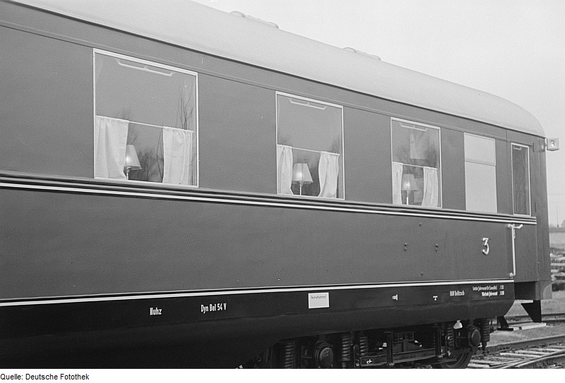 "Локотранс", №6/99:"После 1950 года на DR поступили "спальные вагоны 3-го класса, переделанные из обычных пассажирских. Эти 27 вагонов получили обозначение WLC 4u с номерами 19900-19926. Через год к ним добавились еще 8 вагонов новой постройки типа WLAB 4u c номерами 10301-10308. Использование на этом [Берлин - Брест] направлении вагонов европейской колеи закончилось в 1954 году после сооружения в Бресте пункта перестановки вагонных тележек"