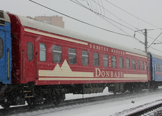 Весь состав в фирменной раскрасске "Донбасс".