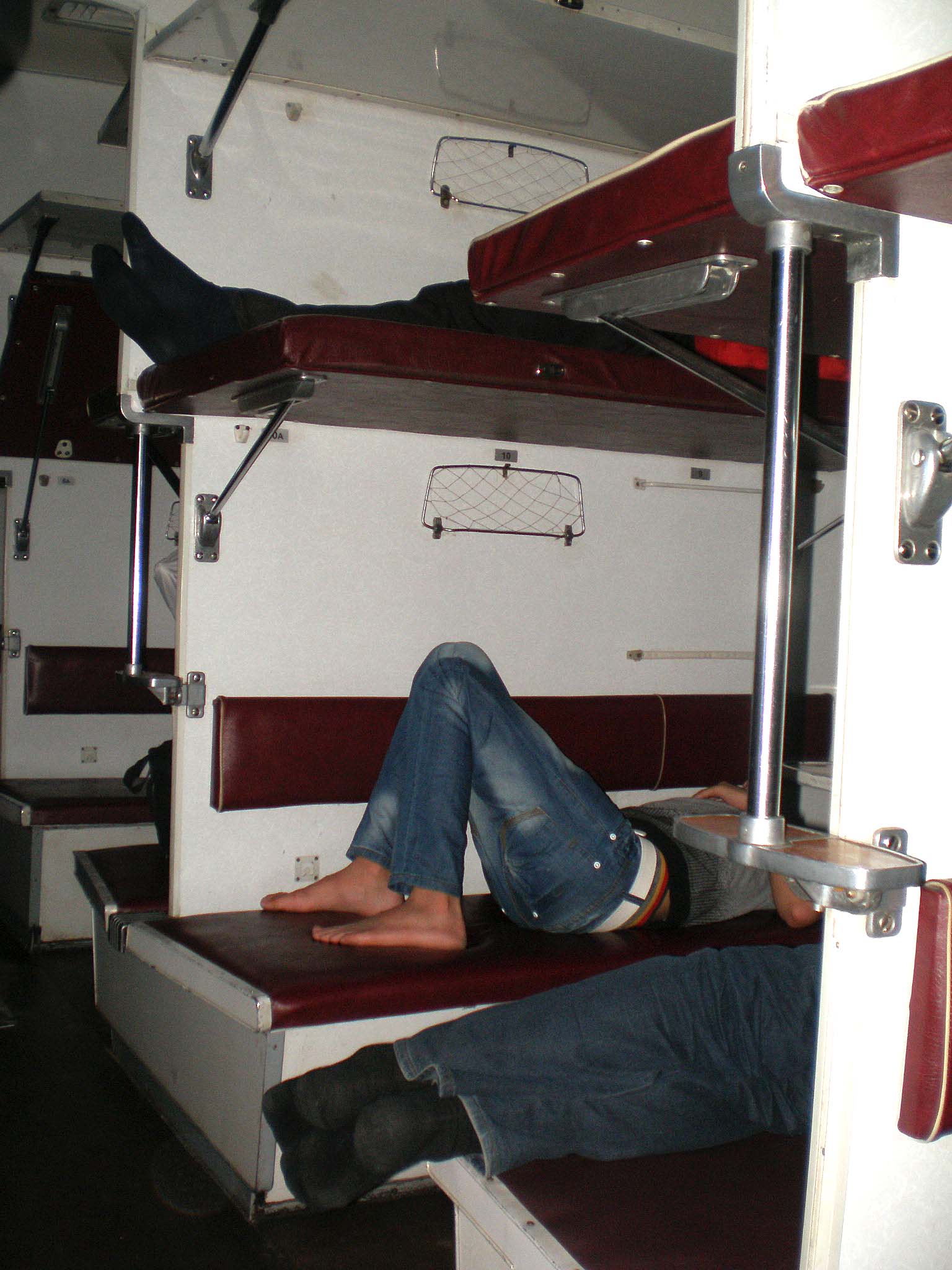 6) Контингент пассажиров: наполняемость 40-50% на линии Красноярск-Ачинск, контингент тихий. После Ачинска, где поезд расцепили на 3 части: перед в Абакан, середину - в Кия-Шалтырь, хвост (2 общих Аммендорфа и 1 КВР КВЗ плацкарт) - в Лесосибирск, наполянемость 100%, ближе к Лесосибирску 20-30%. Большая трамвайность, большой выход на ст.Суриково. Народ кое-где был пьяненький, но было тихо.