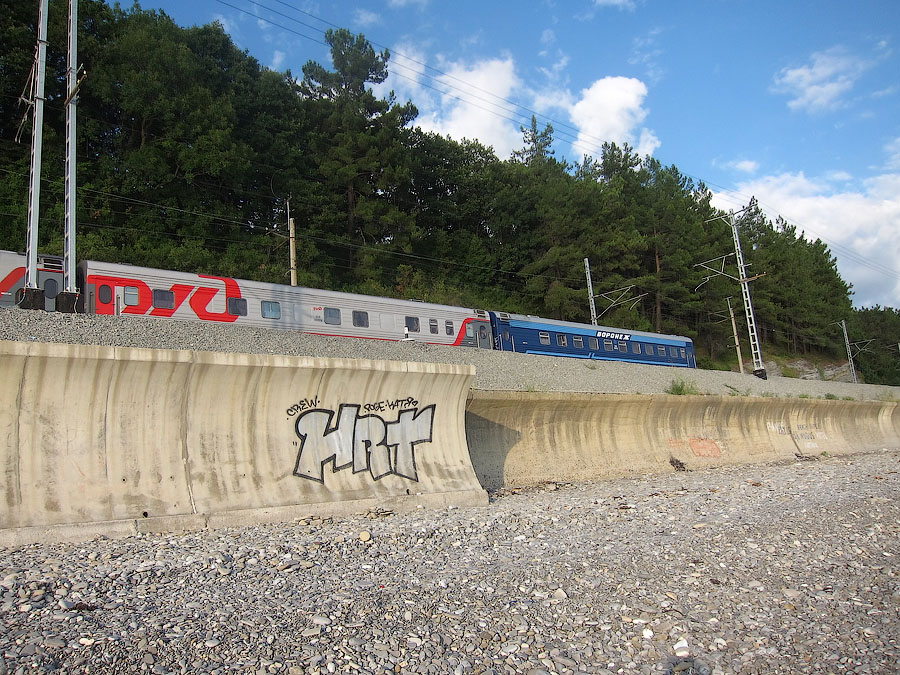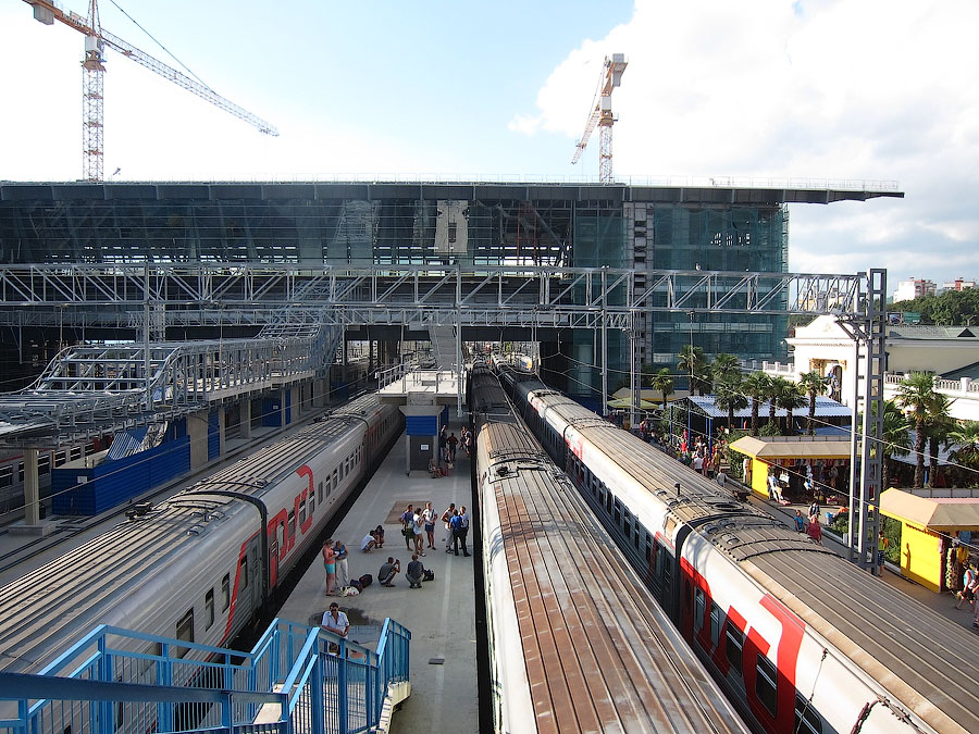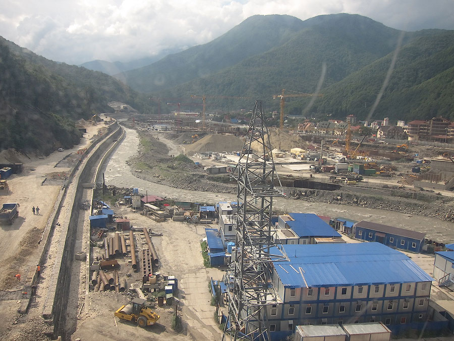 По непосредственной дороге на Красную поляну заметно активное строительство совмещённой автомобильно-железной дороги вдоль русла реки Мзымты. Во всяком случае эстакады и многочисленные балки мостов уже на месте. На многих отрезках установлены опоры КС, дожидается укладки решетка.