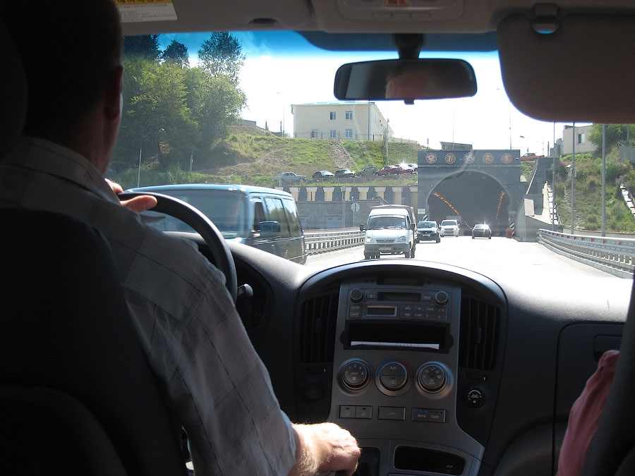 Санаторский гид набрал группу из 6 человек, которая, поместившись в данное транспортное средство, тронулась из Лазаревского ровно в 9:00. А фото сделано в Дагомысе на санитарной остановке