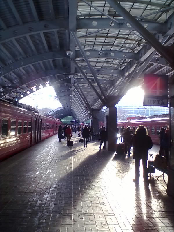 У меня был рейс на 12:00. Я пришёл на платформу в 11:15. В это время на обоих аэроэкспрессовских путях стояли ЭД4М-0407 и ЭД4М-0420 2012гг.в.: