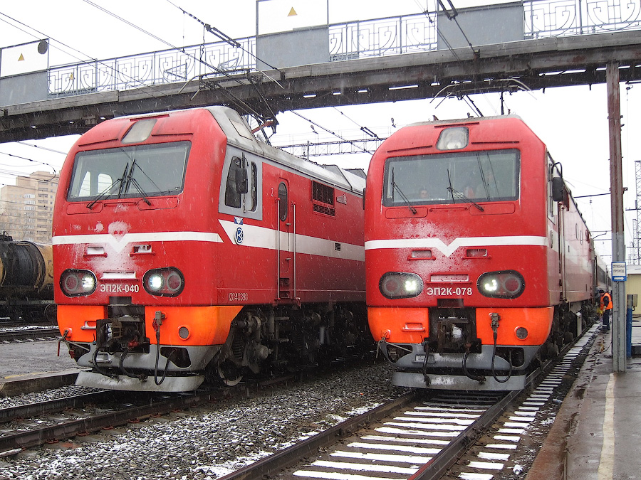 Состав скорого фирменного поезда №026Н "Сибиряк" Москва - Новосибирск на станции Пермь-II под ЭП2К-191. Обрубок, к сожалению: схема состава - 1Л+4К+2П+ВР. У первой платформы (на дальнем плане) мариновался поезд №109М Новый Уренгой - Москва, как