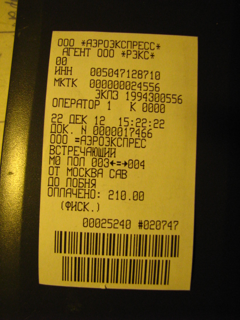Дата поездки - 22.12.2012. Маршрут Москва - Лобня - Москва.