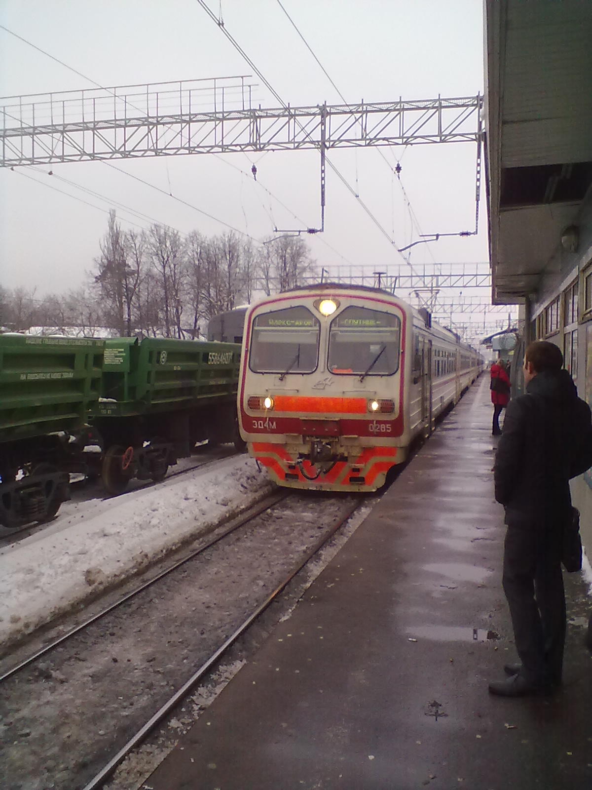 Итак, 11-вагонная ЭД4М-0285 прибыла в Пушкино из Александрова на 1 путь к 3 платформе: