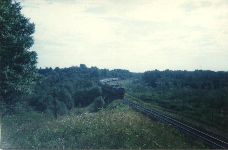 Самое интересное фото я сделал еще в 90-х, хотя ТЭП60 заканчивали курсирование в 2001-2003 гг. на себежском отрезке. Не помню точной даты этого снимка, но число вагонов в 6501 впечатляет: