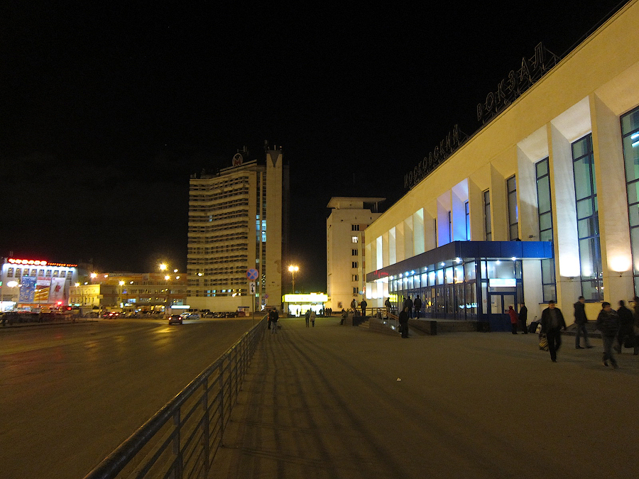 По-настоящему весенний вечер (а "Енисей" отправляется из НН в 22:46 (мск)) встретил достаточно пустынной площадью Революции в Нижнем Новгороде: