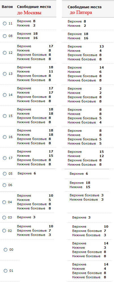 А вот в остальные.. надо очень внимательно смотреть места - а то можно подвесить ДО Москвы то место, кот. до Питера в системе отсутсвует - соответственно, ничего не "выскочит", и в кассе нечего будет брать ::-D: