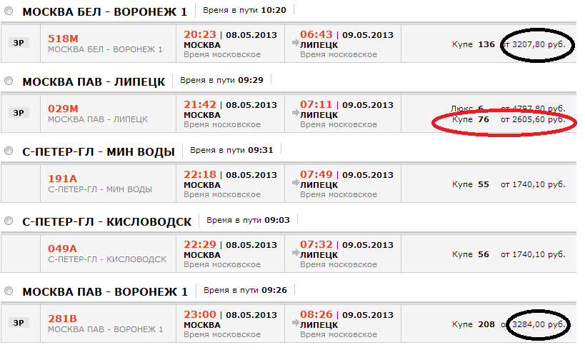 Видимо, в праздники кто-то отвечающий за динамическое ценообразование загулял - сегодня все вернулось на круги своя - на второй день продаж цена на "Жигули" значительно повышается.serg:Вынужден признать, что данное утверждение ошибочно: сегодня второй день продажи на 17.06, а цены не изменились, причем, как в одну, так и в другую сторону. Можно только предположить, что изменение тарифов происходит "вручную" и это забыли сделать...serg:Рискну предположить, что для направления Москва-Самара-Москва и поезда "Жигули" верно следующее утверждение: "на поезда с даты отправления 15 июня минимальная цена действует только в первый день продажи, в дальнейшем цена билета повышается вне зависимости от количества проданных в первый день продажи мест". Ибо цена на второй день продажи увеличивается более, чем на тысячу руб..