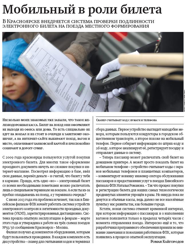 Материал из газеты "Красноярский железнодорожник", №18(8203), 31 мая - 07 июня 2013 года: