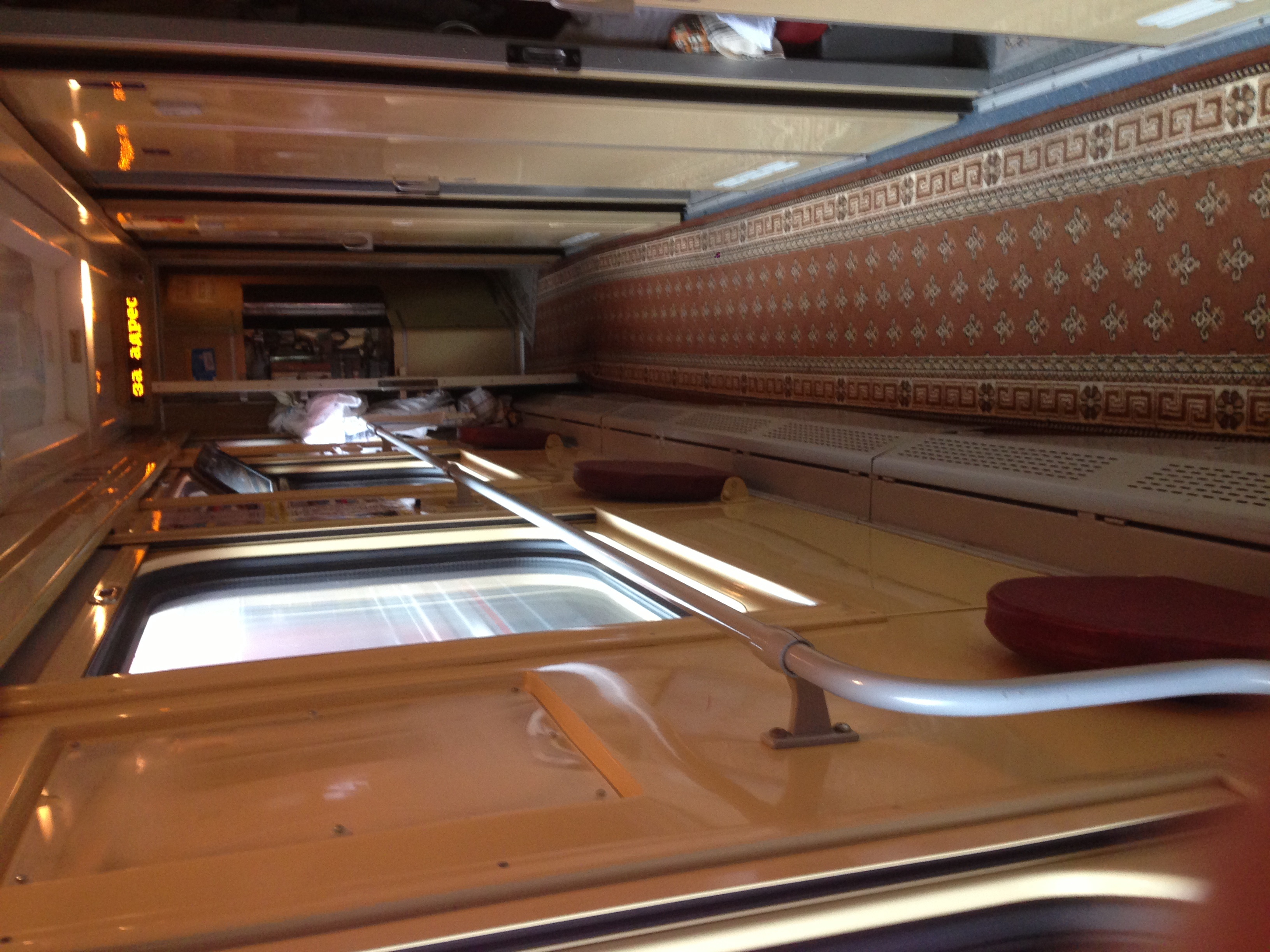 О поезде. Купе после днепровского КВРа. Кондей работал, было чисто. Постель утром сдавать не просили. Из минусов - грязно в туалете и туалет не био. Ну, и проводники одетые как попало.