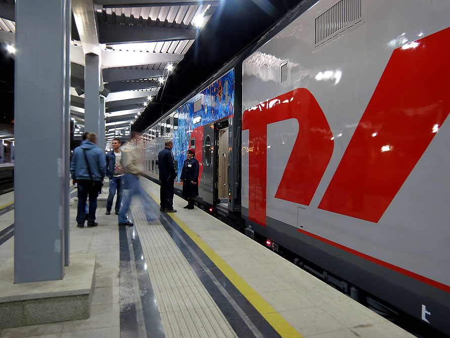 На Казанский приехал в 6.50. На площади перед перронами потихоньку собирался народ. На посадку сначала объявили Кисловодскую четверку, от толпы отсоединился кусочек около 5%, остальные остались стоять. В 7.15 на табло появился номер пути и народ двинулся на платформу. Состав был подан на 3-й путь в 7.20, в большинство вагонов посадка началась сразу же, в наш и в соседний пятый с задержкой на 5 минут. Нумерация была схвоста При посадке проводница встречала всех приветливо, с улыбкой. Документы не проверяла, для прохода в вагон нужно было назвать только номер своего места ::-): была без очков, поэтому посмотреть все равно не смогла бы, к тому же на перроне было темно.