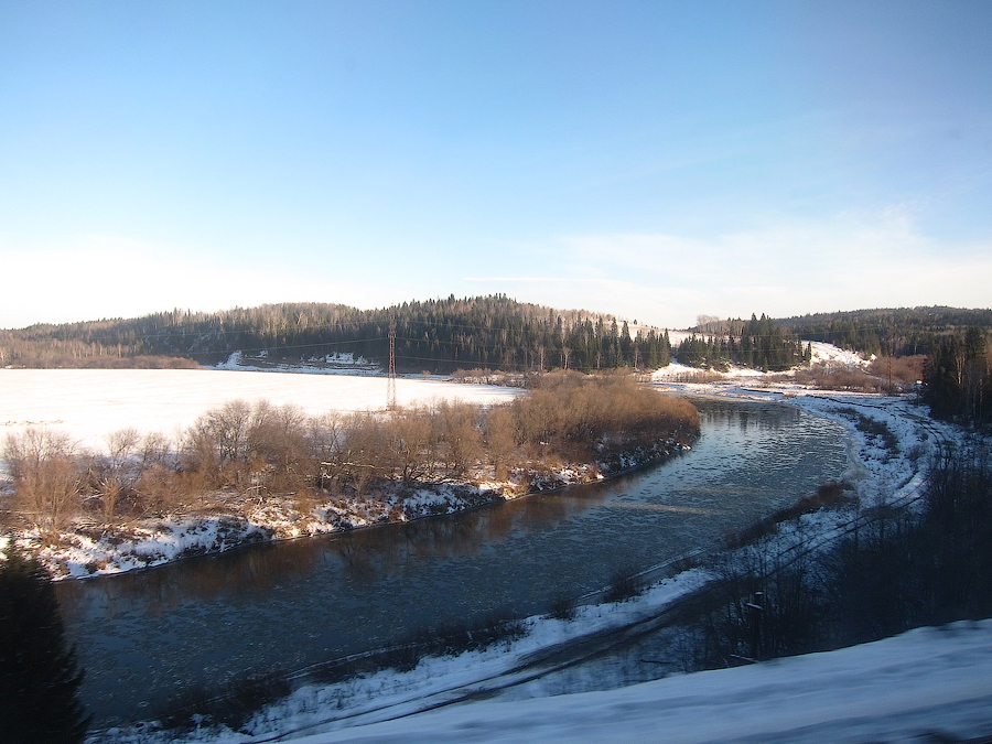 "Мороз и солнце; день чудесный" на участке Транссиба восточнее Кунгура. Пейзажи вдоль долины реки Сылва, которую уже начал схватывать ноябрьский морозец, впечатляют!