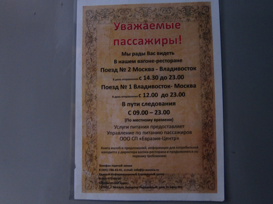 P.S. Ещё тут писали про график, на удивление всё было минута в минуту, абсолютно без опозданий, по крайней мере до Красноярска.