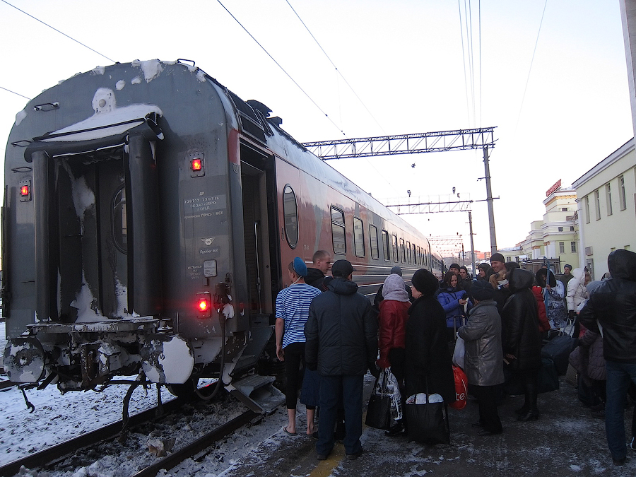 К слову, состав "усох" на один плацкартный вагончик по сравнению с предыдущими отзывами - в хвосте болталась лишь одна плацка в корпоративном цвете с ожидаемым муравейником на высадке-посадке: