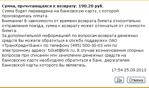 сейчас протестировал на орехово-зуевском экспрессе. :*DANCE*: Сумма полностью возвращается