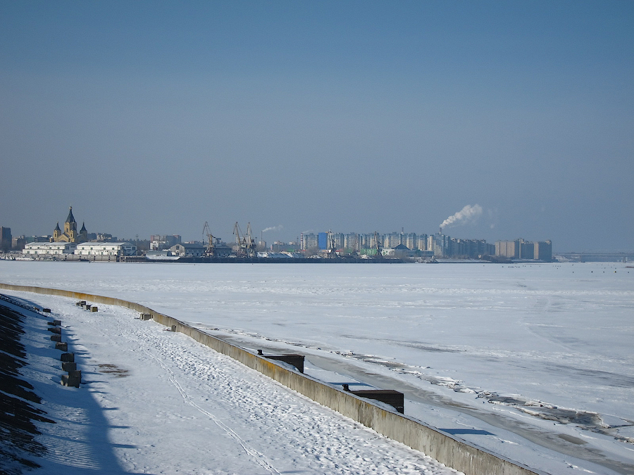 Того берега Оки почти не видно, виден только порт.Иван:Мне кажется, или на том берегу Оки новых домов стало больше?