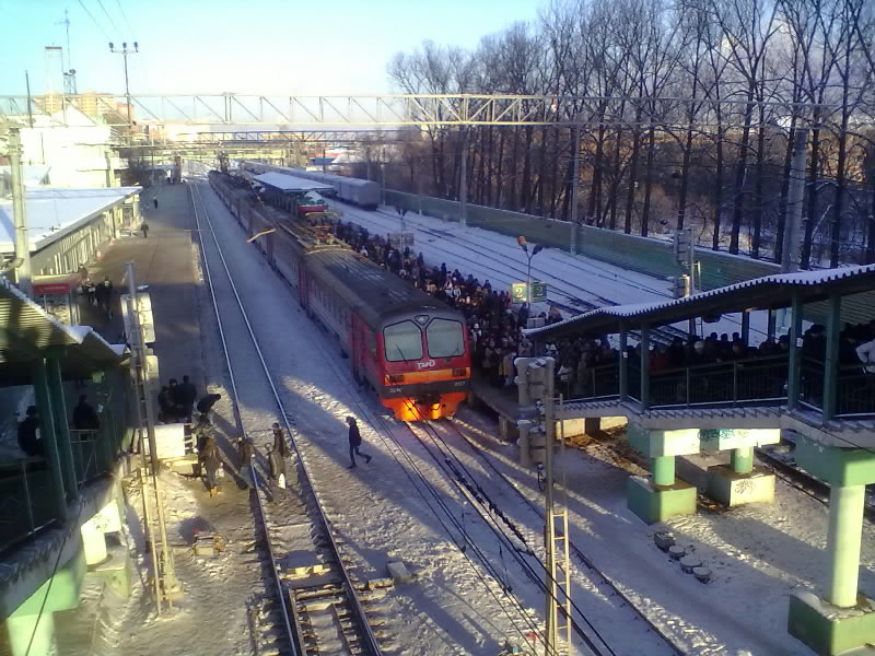 ЭД4М-0167 сообщением Ростов-Яр. - Александров-1 (прибытием в 14:54) на ст. Александров-1. Высадка - около 100 человек. Фото сделано 09.01.16.