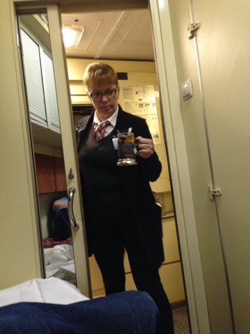 После отправления пришла проводница и обратившись ко мне по имени-отчеству спросила - может ли она обратиться ко мне с просьбой. Я опять-таки ожидал просьбы о переходе в первое купе, но она попросила не трогать трафаретную табличку с номером вагона на окне - при этом посетовала, что по пути в Питер на нее составили акт в Туле за отсутствие таблички с номером вагона, которую снял пассажир. Кстати, пассажира тоже можно понять... Я заверил проводницу, что трогать не буду, ибо поездка проходит в темное время суток. Я спросил проводницу - почему бы ей не перевесить табличку к себе в служебку и получил ответ, что по стандарту табличка с номером вагона должна висеть напротив таблички с другой стороны вагона, а окна напротив служебки нет. Если есть знатоки - подскажите: есть ли такой стандарт? Но если доведется ехать в период белых ночей (это сомнительно, ибо ценник полезет вверх), то вручу трафаретную табличку проводнику...