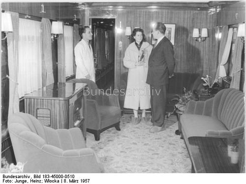 8 марта 1957 года. На ярмарке в Лейпциге VEB Wagoonbau Görlitz представляет 15-вагонный поезд-"салон". В составе — пять вагонов-салонов (один типа A, три типа B, один типа C), вагон-ресторан-"салон", нормальный вагон-ресторан, комбинированный машинный и багажный вагон, медицинский вагон, пресс-вагон, пять вагонов сопровождения в версиях 2 и 3 классов. Поезд имеет собственный источник питания — дизельный генератор. Вагон-салоны оснащены полуавтоматическим кондиционером. Каждый вагон можно толкать (?) индивидуально, у каждого 54-вольтовое освещение. Поезд объединяет 25 служебных соединений (?), а также телефон. Каждый вагон длиной 23,6 м, с буферами. Поезд поставляется с 2 комплектами тележек: стандартной и широкой колеи.