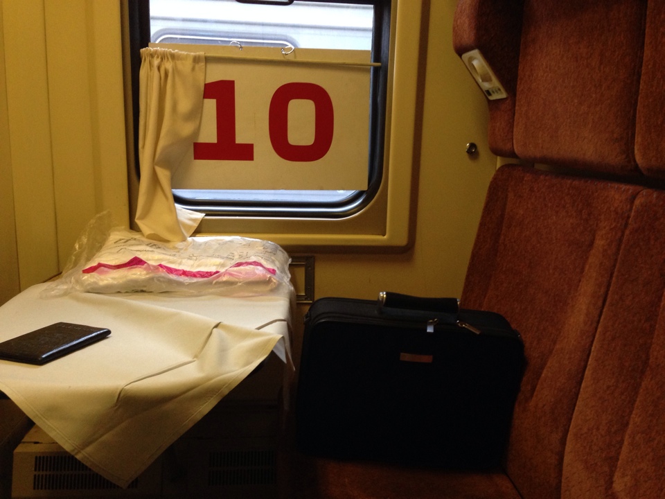 Совершил поездку на сабжевом поезде от Москвы до Питера и обратно на своем постоянном месте. При поездке в сторону Питера все было как всегда, трафартеной таблички на окне не было и я даже не стал ничего фоткать, намереваясь сразу лечь спать. Но здесь ко мне в купе заглянуло весьма очаровательное создание и попросило чая: