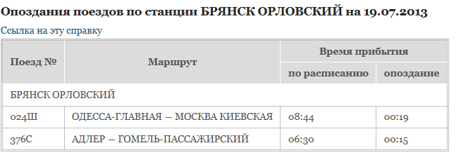 И кому верить? "Движение поездов он-лайн" по Брянску опоздание 1 час, справка Экспресс-3 - 15 минут? Или по справке показывают опоздание по отправлению со станции?