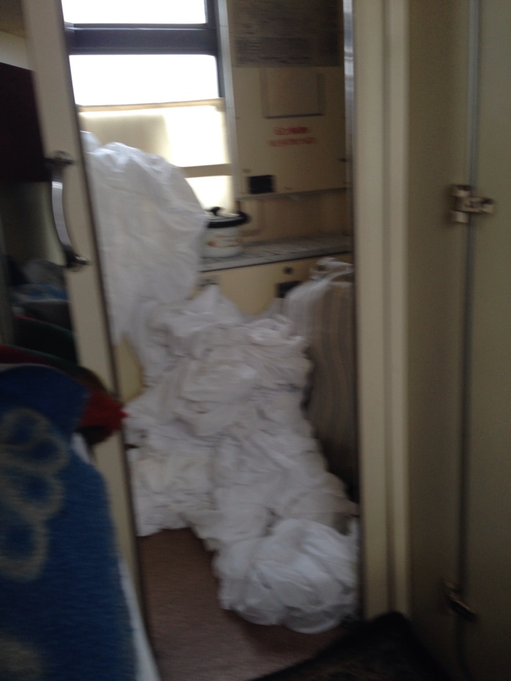 Хотел вернуть проводнице, но она опередила меня, попросив не трогать ее вещи. После того, как повесил свои - возникла интригующая картинка (думал ее даже в разделе про секс в поездах разместить):