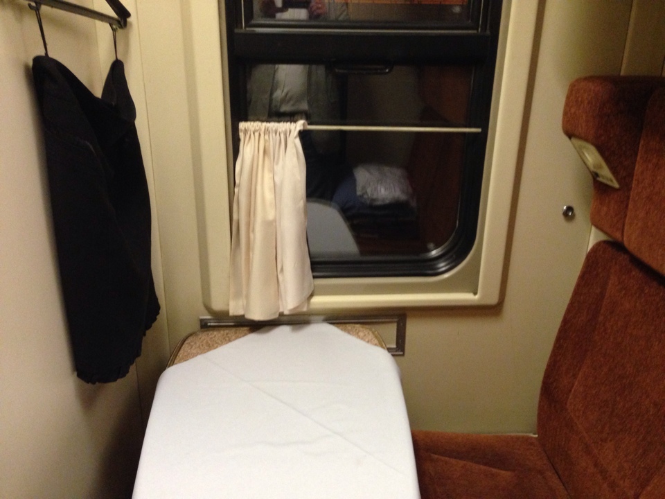 Совершил очередную поездку на поезде в направлении Питера. На этот раз окно не было загорожено трафаретной табличкой, но в купе присутствовали детали женской одежды: