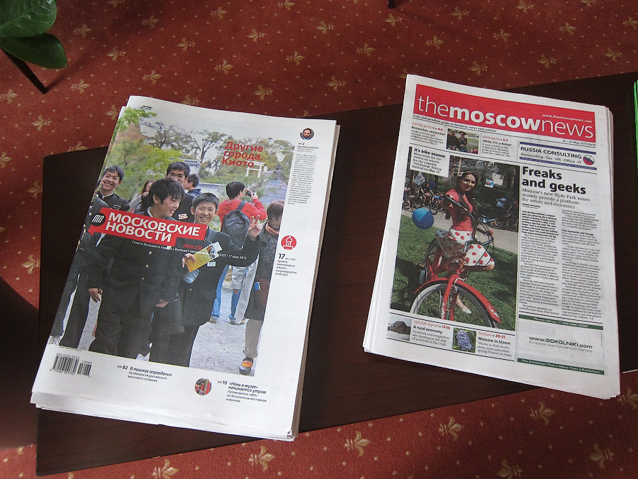 Пресса к раздаче в зале представлена выпусками "Московских новостей" на русском и англицком, кроме того бесплатно наливают чашки чая. Ничего другого в буфете (а там отдельный прейскурант) не оказалось.