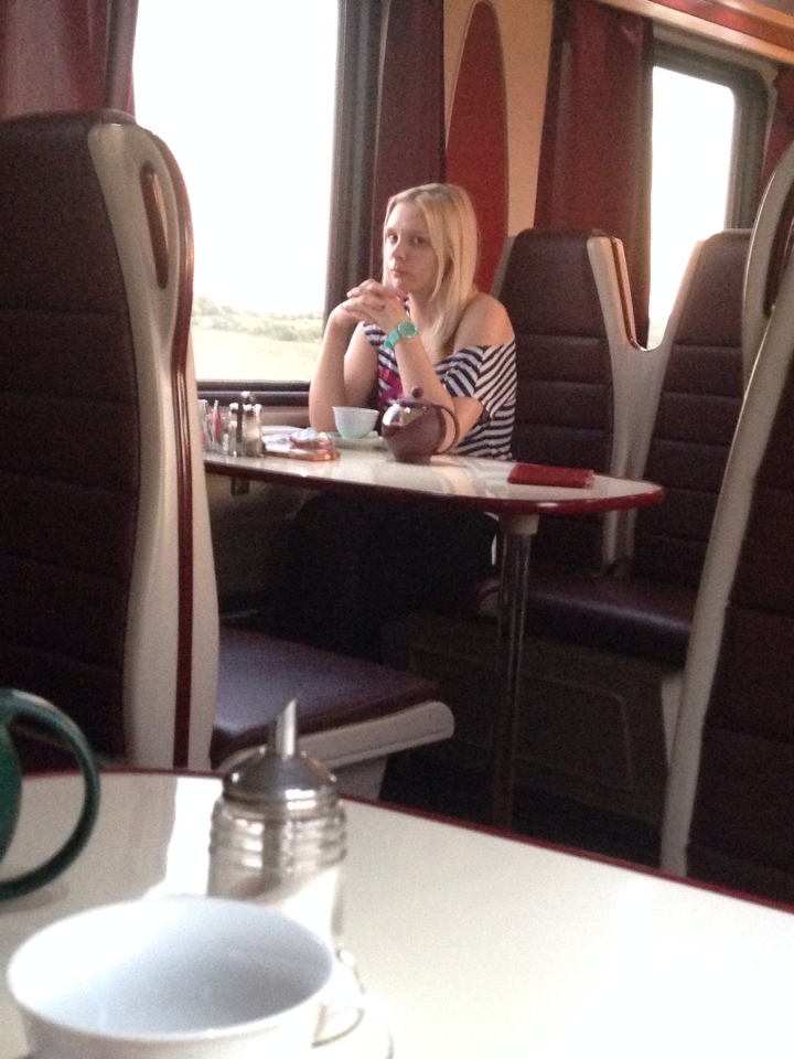 Несколько неординарная поездка случилась вчера. Когда по традиции зашел в вагон-ресторан, через полчаса после отправления - почти все столики (за исключением одного, за который я и присел) уже оказались заняты. И не просто заняты, а заняты исключительно женским полом, но тоже за исключением одного, за которым сидел молодой человек -