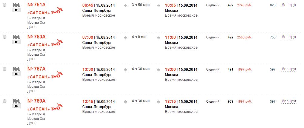 А "Сапсаны" со временем в пути "более 4.10" - это только дневная пачка (13.30 и 13.45 в оба конца).